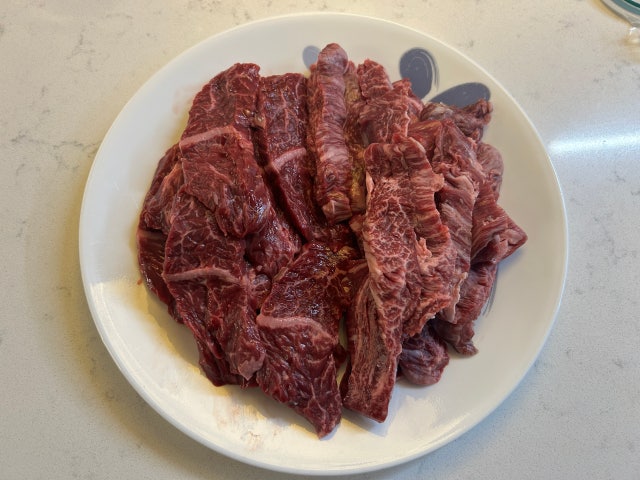 2. 등심은 0.5cm 두께로 썰어주세요. -> 두께 조절 불가(기본 후라이팬 구이용 두께)