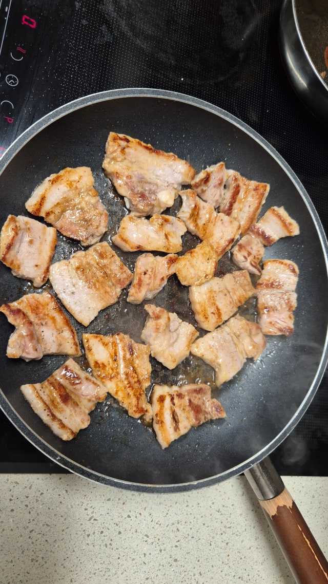 삼겹살이 도톰한 두께로 맛있게 잘 구어집니다~ 맛도 구수하고 좋습니다~~