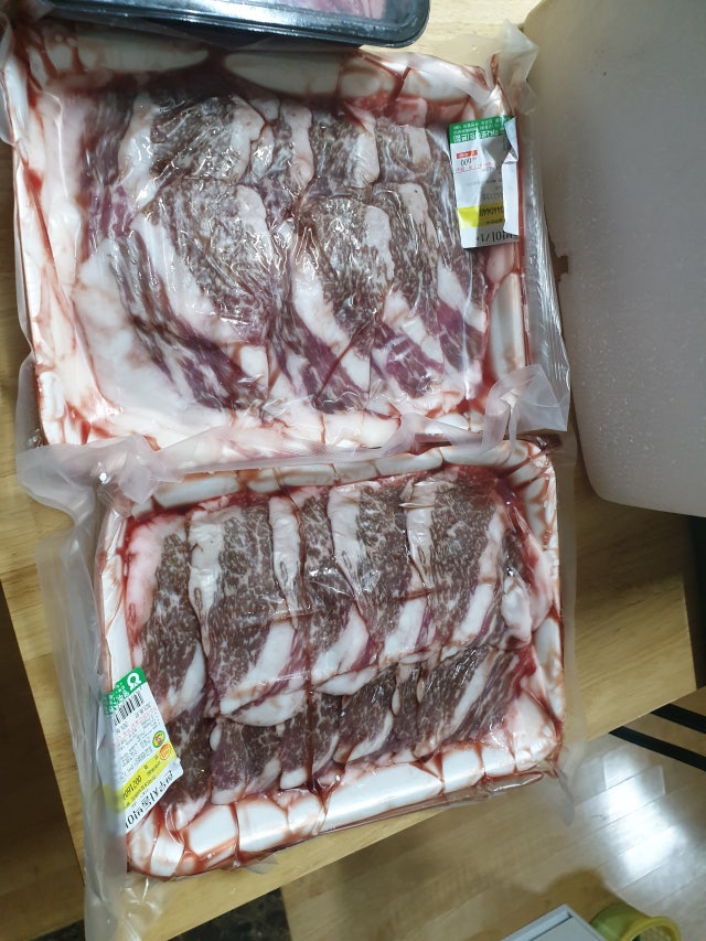 차돌박이 아들이 좋아해서 주문 시 늘 합니다. 이번에는 여름이라서 그런가요. 핏물이 많이 있네요.그래도 맛있게 먹었습니다.
