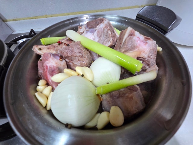 행사덕에 저렴하게 꼬리 한마리분을 구매했어요. 날이 더워 힘들었지만 맛나게 고아 먹었어요~