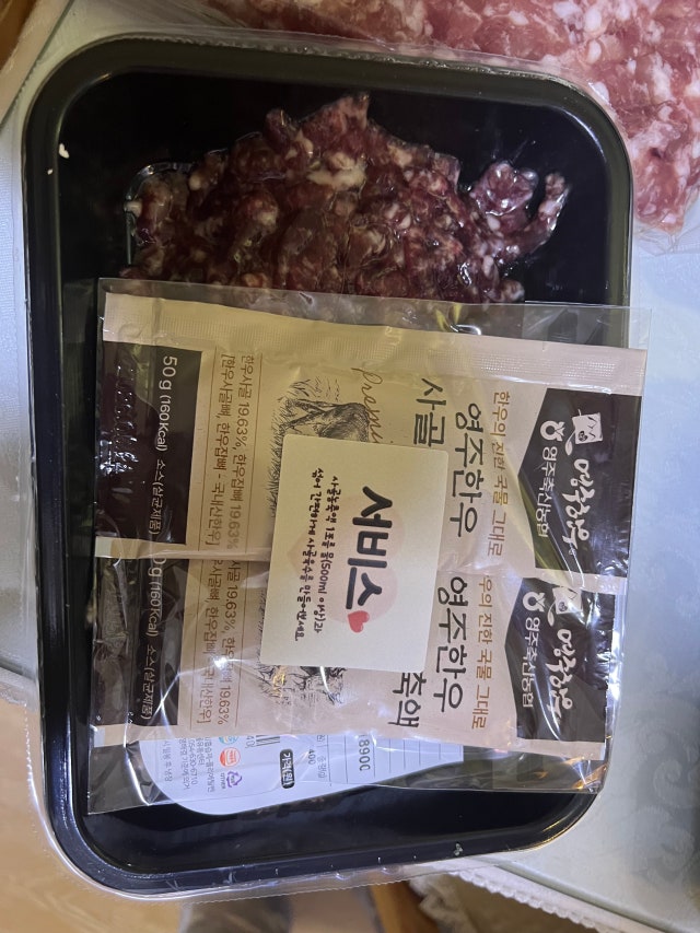 다짐육 처음 구매하는데 때깔이 좋아요~^^ 한우사골 서비스 감사해요!
