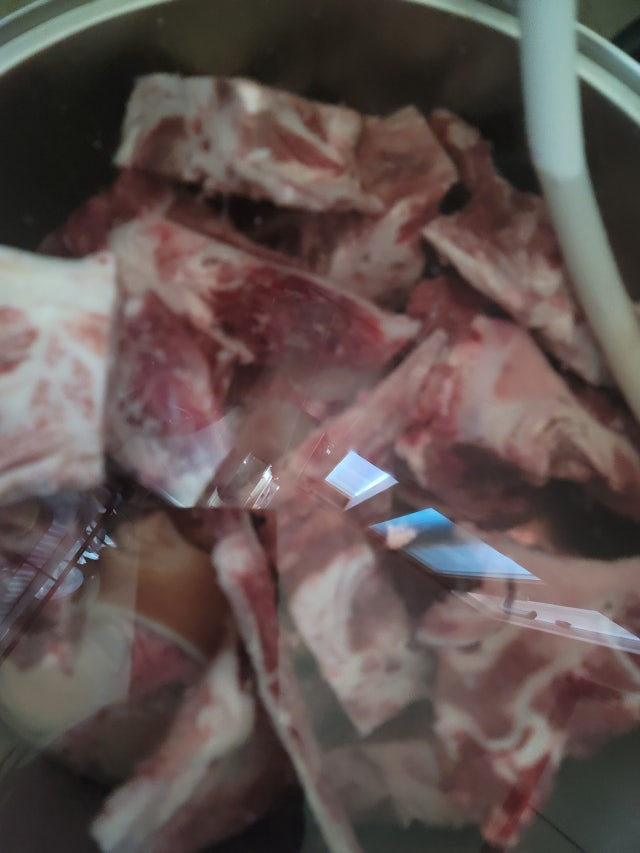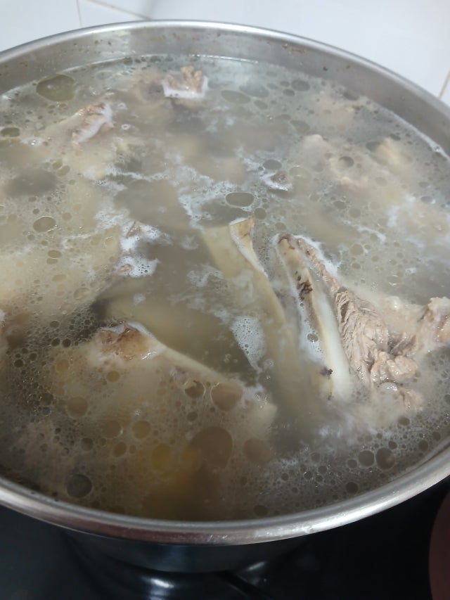아직 끓이지는 않았지만 뼈가 엄청 신선해 보여요