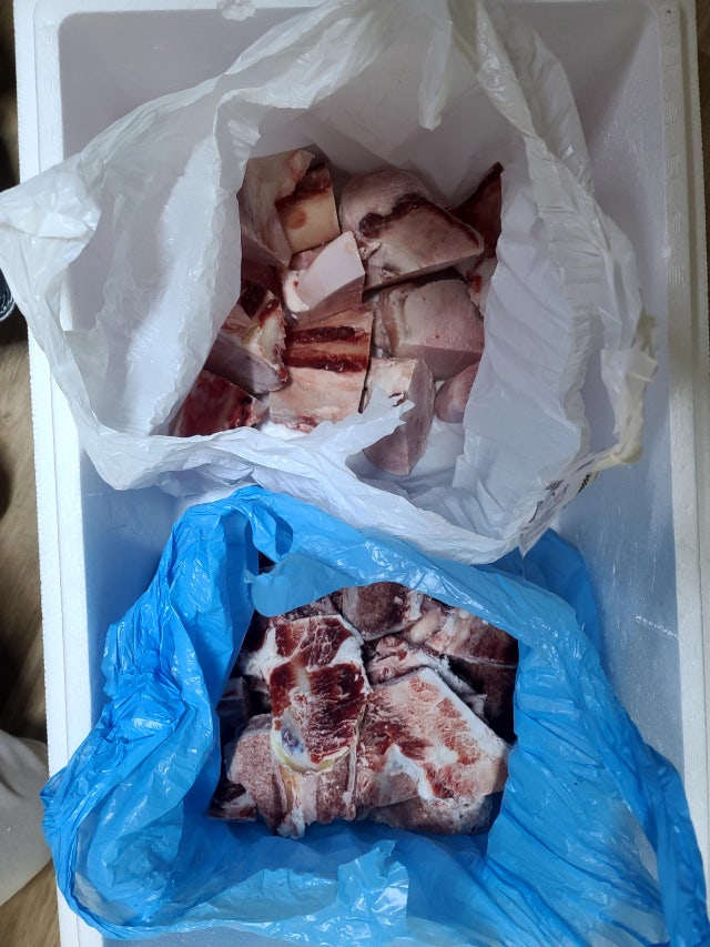 3. 사골은 2kg씩 나눠담아주세요.-> 뼈는 분할 포장 불가